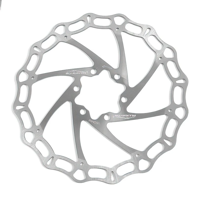 Bei den kompromisslosen Bremsscheiben der Crown-Serie von Alligator ist der Name Programm, denn mit ihnen kannst du deinem Bike die Krone aufsetzen. Diese sehr leichten Scheiben richten sich in erster Linie an eingefleischte Wettbewerbsbiker aus dem CC und Marathonbereich, die um jedes Gramm an ihrem Bike kämpfen , denn diese sehr leichten Rotoren tragen effektiv zur Reduktion der drehenden Massen deiner Laufräder bei, was sich im Kampf um Sekunden in einer spürbar besseren Beschleunigung niederschlägt. Trotz ihres niedrigen Gewichts überzeugen diese Bremsscheiben mit einer erstaunlichen Standfestigkeit, während eine weitere positive Eigenschaft dieser Hochleistungsrotoren ihre sehr gute Materialqualität ist, die für eine lange Lebensdauer und unzählige sichere Bremsvorgänge sorgt. Speziell bei nassen und schlammigen Bedingungen stellen die großen Freiräume im Reibring der Bremsscheibe eine gute Schmutzabfuhr und Feuchtigkeitsverdrängung sicher, was zu geräuscharmen und jederzeit konstanten Bremsvorgängen führt. Neben ihren klaren funktionalen Vorzügen überzeugen die Rotoren der Crown-Serie darüber hinaus mit einem sehr eigenständigen optischen Auftritt, der jedem Bike im wahrsten Sinne des Wortes die Krone aufsetzt.