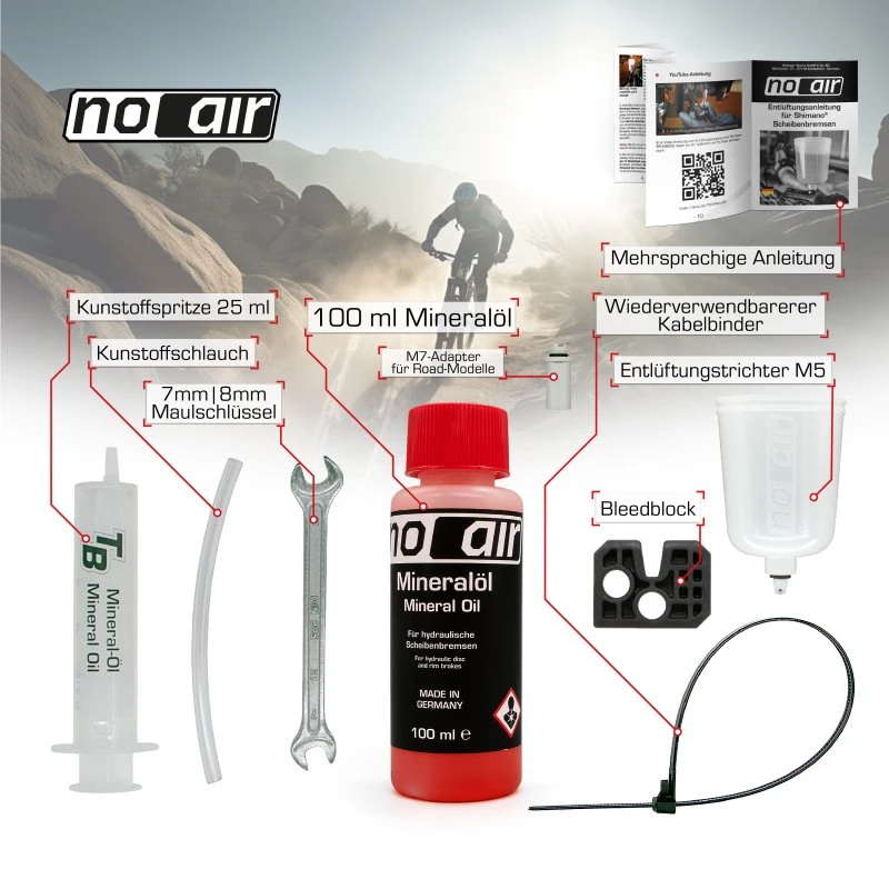 Nach über 15 Jahren Erfahrung mit Entlüftungskits für hydraulische Fahrradbremsen haben wir die noair Entlüftungskits entwickelt mit dem Ziel eine hochwertige und günstige Alternative zu schaffen, die es auch unerfahrenen Schraubern ermöglichst, ihre Shimano Bremse schnell, sicher und einfach zu entlüften.