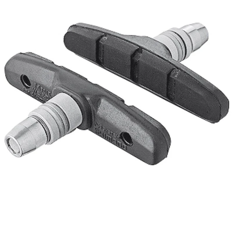 Zur Erzielung einer guten Bremsleistung kommt es auf die perfekte Materialpaarung zwischen Belag und Felge an. Mit dem M70T3 von Shimano ergibt sich eine hervorragende Konstellation, die für überzeugende Verzögerung insbesondere unter nassen Bedingungen sorgt. Das speziell auf Aluminiumfelgen und nasse Bedingungen abgestimmte Material ist dabei nicht nur besonders griffig, sondern auch leise und langlebig. Die einteilig ausgeführte Konstruktion mit geschraubtem Schaft erlaubt keinen Tausch des Belags im Tragkörper (Non Cartrige System)